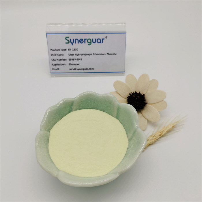 Cationic guar gum is made from natural and renewable natural resources guar after purification and chemical modification of cationic polymer, can effectively increase the viscosity of formula system, the rheological properties of shear is thinning can make thick formula system has excellent spreadability, combine with anionic surfactant of shampoo system can achieve good control performance. As a thickening agent, conditioner, antistatic agent in frequent use shampoo, anti-dandruff shampoo and conditioning shampoo products have a wide range of applications.
